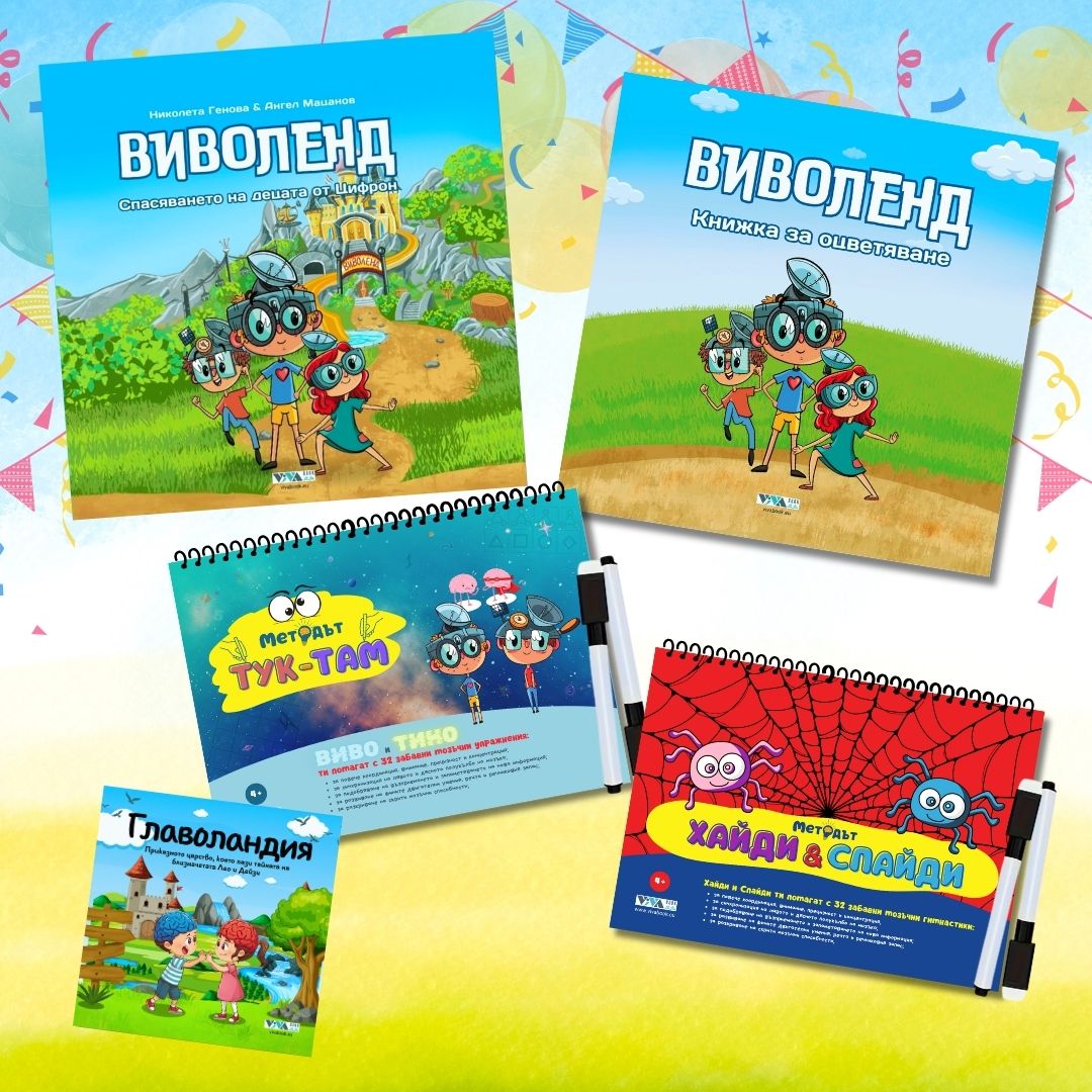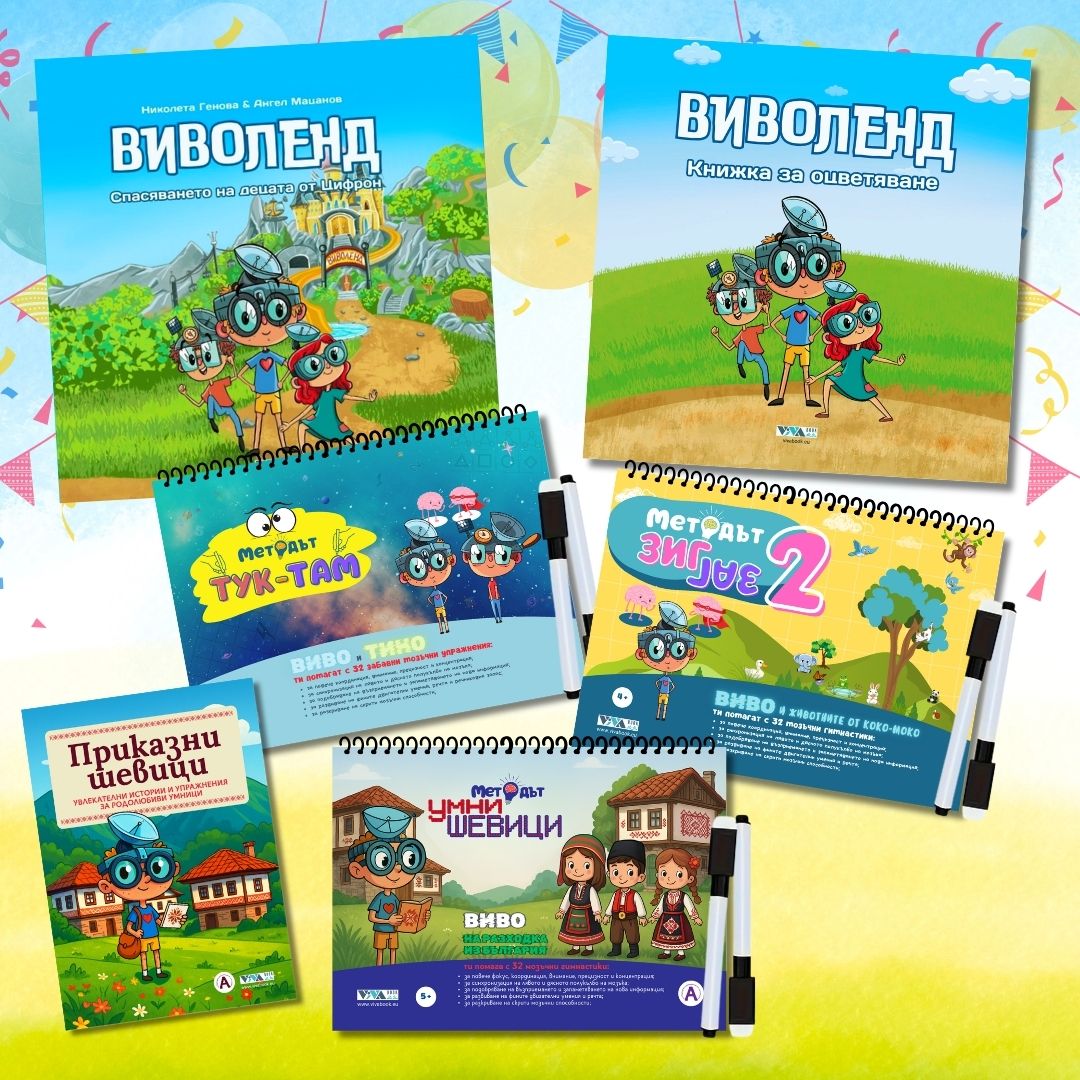 Този комплект събира пет от най-търсените и препоръчвани тетрадки на Vivabook, с които децата развиват мозъчни връзки, координация, внимание и логика – чрез игри, движения и откривателски задачи. Подходящ е както за предучилищна възраст, така и за ученици до 15-16 години.