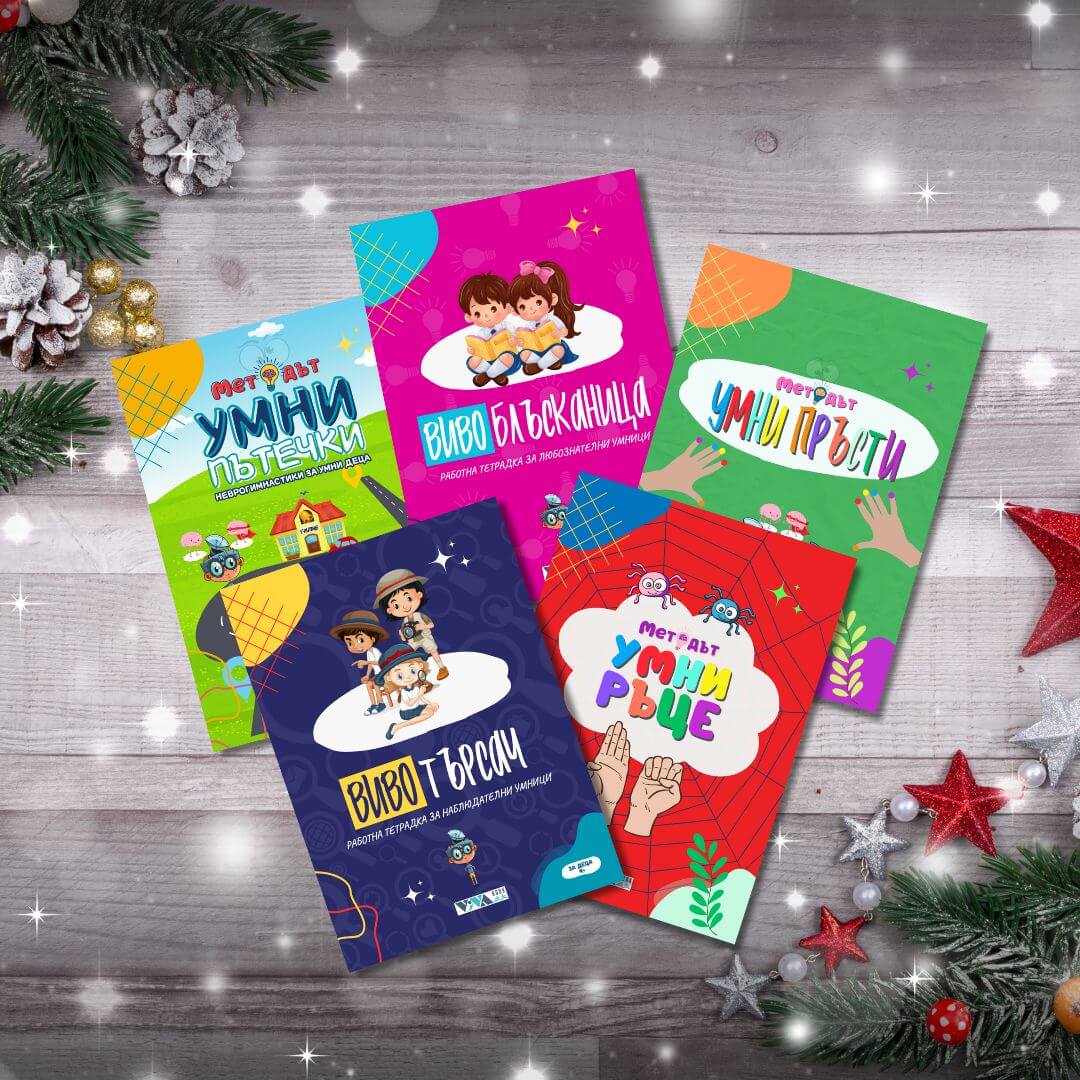 Този комплект събира пет от най-търсените и препоръчвани тетрадки на Vivabook, с които децата развиват мозъчни връзки, координация, внимание и логика – чрез игри, движения и откривателски задачи. Подходящ е както за предучилищна възраст, така и за ученици до 15-16 години.